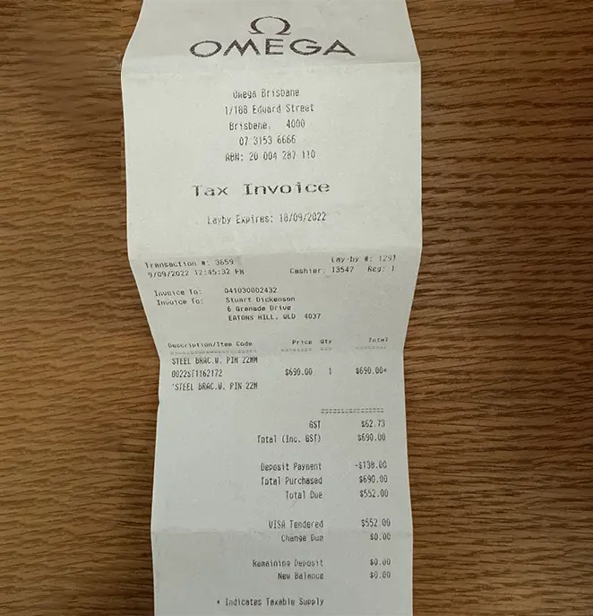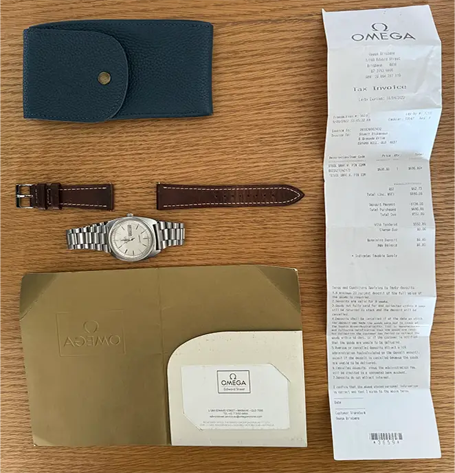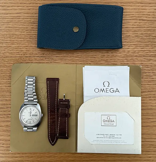 | What's Included | Leather pouch, spare links, Omega reciept $600 new band, leather strap (not Omega) |