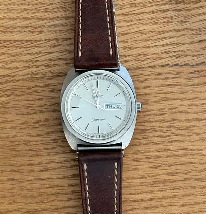 | My Opinion | This is the Omega Seamaster ref 166.064, believed to date back to the mid-1970s. This timeless piece houses the Omega automatic calibre 752, boasting a quick-set date function and impeccable timekeeping. The crown and winding action operate flawlessly, ensuring optimal performance. With a case diameter of 38mm x 41mm lug to lug, it's deemed 'jumbo' sized for its era, offering a wear experience akin to modern watches. Remarkably rare, this variant is seldom seen in forums, distinguishing it from typical Seamaster/Constellation vintage pieces. Displaying both the date and day in a format of 1, 2, 3, 4 and Sun, Mon, Tues, respectively, its functionality is matched by its style. Accompanied by a period-correct Omega bracelet, acquired directly from Omega in 2022 with receipts and spare links included, as well as a tastefully paired genuine brown leather strap. Despite its age, the condition is remarkable; the original radial brushing remains visible, with only one hairline scratch on the case. The acrylic crystal exhibits no visible scratches, while the pristine white dial features vertical brushing, imparting a delightful texture. This vintage Omega Seamaster is a true testament to enduring craftsmanship and timeless elegance. |